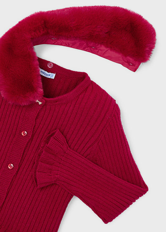 4311 Mayoral Dressy Faux Fur Collar Cardigan