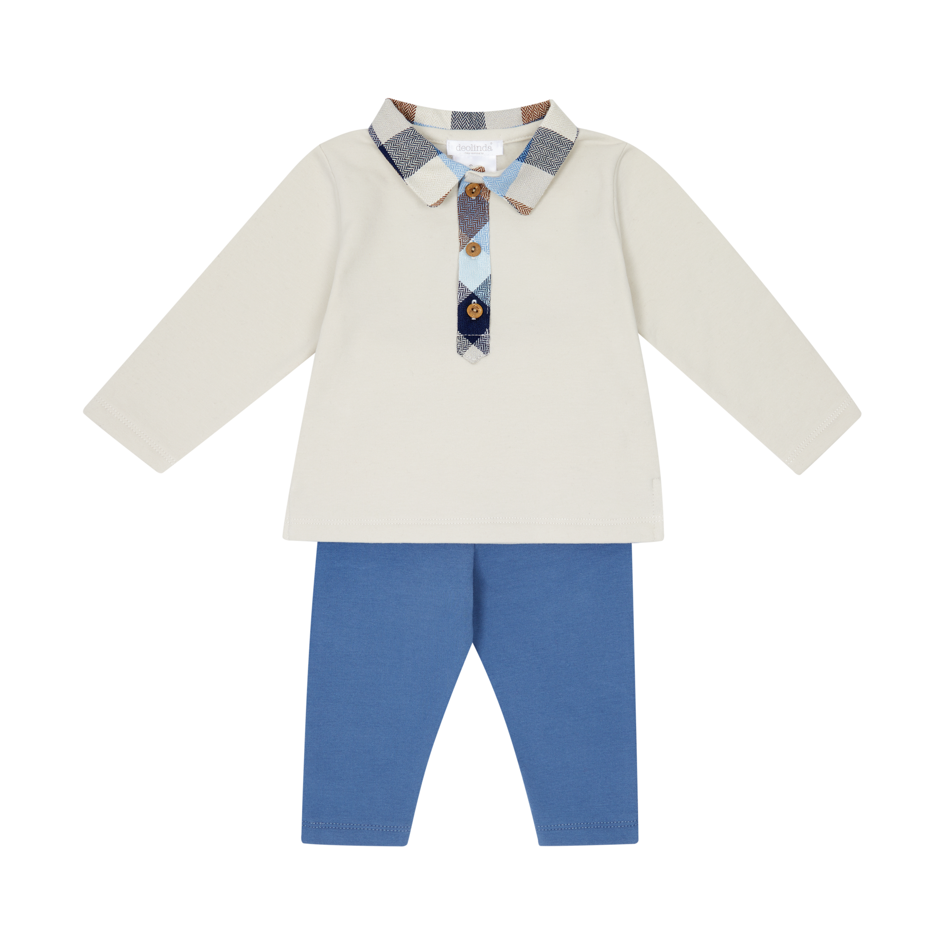 This 25735 Deolinda 2 Piece Set features blue trousers paired with a long-sleeved rugby shirt. The shirt is designed with a checked collar detail and a button placket, adding a refined touch to a classic casual ensemble. Ideal for both comfort and style, this set offers a polished look suitable for a variety of occasions.