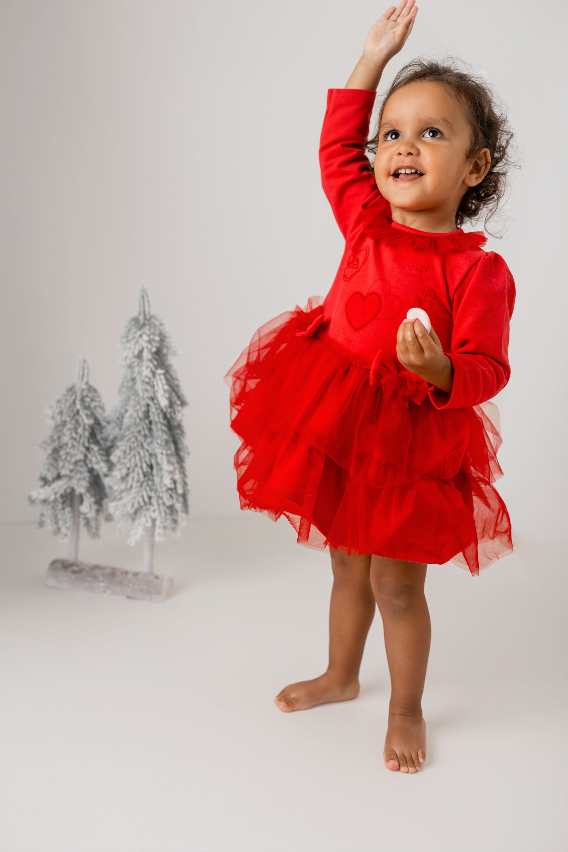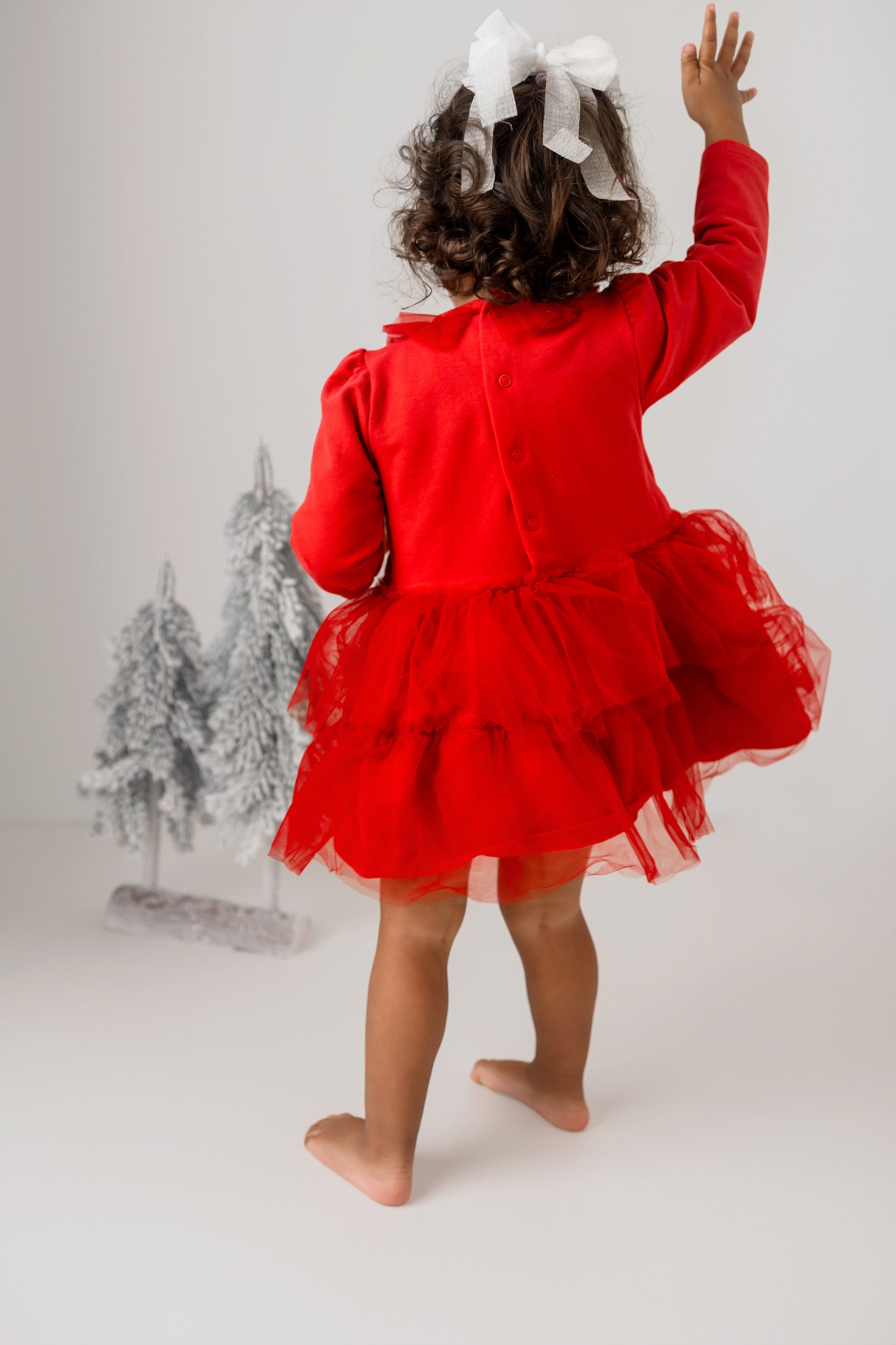 This exquisite tulle party dress features layered skirts for an elegant silhouette, enhanced by delicate bows at the waist and a charming tulle frill collar. Designed to combine sophistication and comfort, it is an ideal choice for special occasions and celebrations.